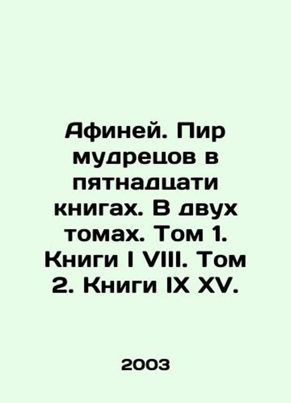 Athenaeus. The Feast of the Wise in Fifteen Books. In Two Volumes. Volume 1. Books I VIII. Volume 2. Books IX XV. In Russian (ask us if in doubt)./Afiney. Pir mudretsov v pyatnadtsati knigakh. V dvukh tomakh. Tom 1. Knigi I VIII. Tom 2. Knigi IX XV. Series: Literary Monuments.The publication was prepared by N.T. Golinkevich M.G. Vitkovskaya A.A. Grigorieva O.L. Lewinskaya B.M. Nikolsky. Moscow Science. 2003-2010. For a millennium it was from Athens that Western Europe received information about the smallest details of ancient life musical culture funny historical facts and philosophical disputes. SKUalb34bfbafbb0bbfcb1.