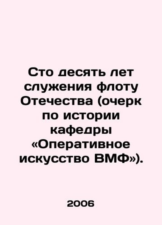 One hundred and ten years of service to the navy of the Fatherland (essay on the history of the department The operational art of the Navy ). In Russian /Sto desyat let sluzheniya flotu Otechestva (ocherk po istorii kafedry «Operativnoe iskusstvo VMF»). S.Pb.Beresta. 2006. 363 p. We have thousands of titles and often several copies of each title may be available. Please feel free to contact us for a detailed description of the copies available. SKUalb34efab3a7e8af59f.