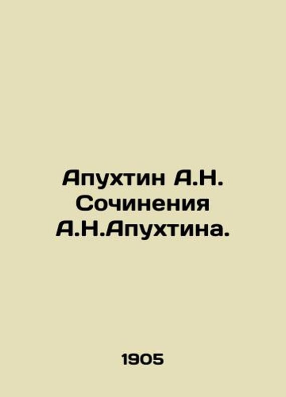 Apukhtin A.N. Writing by A.N.Apukhtina. In Russian /Apukhtin A.N. Sochineniya A.N.Apukhtina. S-Pb Typography by A.S. Suvorin 1905. We have thousands of titles and often several copies of each title may be available. Please feel free to contact us for a detailed description of the copies available. SKUalb3516f5049e8b3a3b.