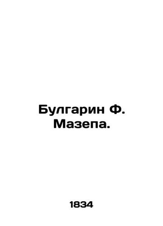 Bulgarin F. Mazepa. In Russian /Bulgarin F. Mazepa. Soc. Thaddeus Bulgarin. In 2 h. Parts 1-2. SPB In the Printing House of the widow Plushar with her son. 1834. 4, VIII, 368 p. We have thousands of titles and often several copies of each title may be available. Please feel free to contact us for a detailed description of the copies available. SKUalb351e0cde65077391.