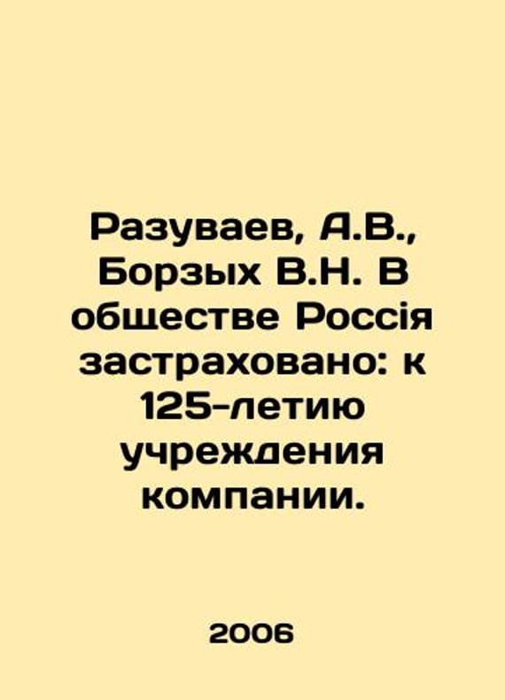 Razuvaev, A.V., Borzykh V.N. The company of Russia is insured: for the 125th anniversary of the companys establishment. In Russian /Razuvaev, A.V., Borzykh V.N. V obshchestve Rossiya zastrakhovano: k 125-letiyu uchrezhdeniya kompanii. Series: Library of the insurance company Russia M. Creative-Management-Consulting 2006. 184s. We have thousands of titles and often several copies of each title may be available. Please feel free to contact us for a detailed description of the copies available. SKUalb3522b58d61cf57b7.