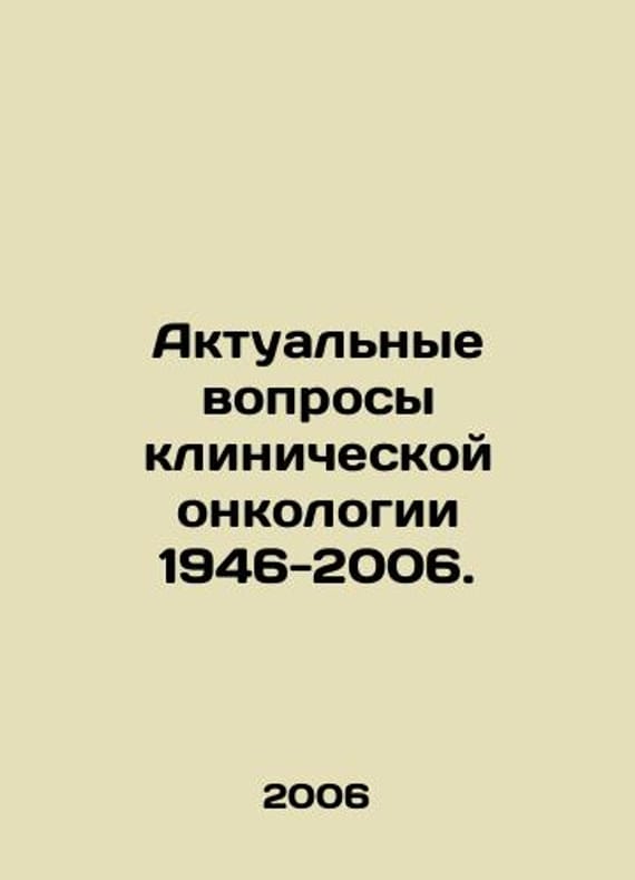 Current Issues in Clinical Oncology 1946-2006. In Russian /Aktualnye voprosy klinicheskoy onkologii 1946-2006. Jubilee collection of scientific papers dedicated to the 60th anniversary of the St. Petersburg State Institution of Health Care, City Clinical Oncology Clinic, St. Petersburg Agraph and 2006 304s. We have thousands of titles and often several copies of each title may be available. Please feel free to contact us for a detailed description of the copies available. SKUalb352a6e4c9244a8a9.