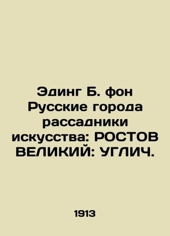 Eding B. von Russian cities are hotbeds of art: GREAT GREAT: UGLICH. In Russian /Eding B. fon Russkie goroda rassadniki iskusstva: ROSTOV VELIKIY: UGLICh. M. 1913g. 198chu. We have thousands of titles and often several copies of each title may be available. Please feel free to contact us for a detailed description of the copies available. SKUalb3539932b08f0b5e5.