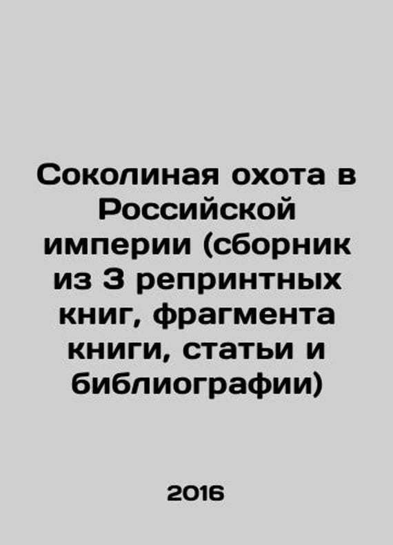 Falcon Hunting in the Russian Empire (collection of 3 reprinted books, book fragments, articles and bibliographies) In Russian /Sokolinaya okhota v Rossiyskoy imperii (sbornik iz 3 reprintnykh knig, fragmenta knigi, stati i bibliografii) Model 5 Moscow Publishing House, V. Sekachev, 2016 140p. We have thousands of titles and often several copies of each title may be available. Please feel free to contact us for a detailed description of the copies available. SKUalb3541e9d5d8df5bec.