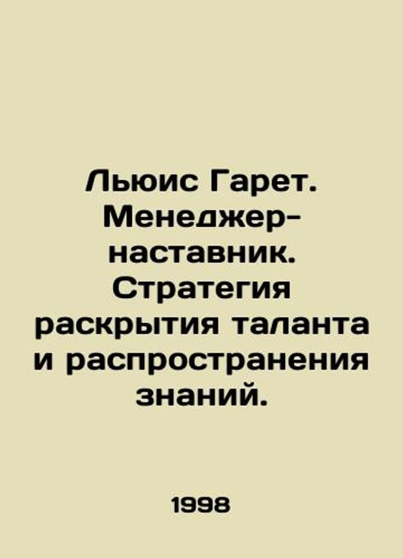 Lewis Gareth. Mentoring manager. Strategy for unlocking talent and spreading knowledge. In Russian /Lyuis Garet. Menedzher-nastavnik. Strategiya raskrytiya talanta i rasprostraneniya znaniy. Series: Learning to Manage Minsk Amalthea 1998. 288 p. We have thousands of titles and often several copies of each title may be available. Please feel free to contact us for a detailed description of the copies available. SKUalb35688c6e7d755bfe.