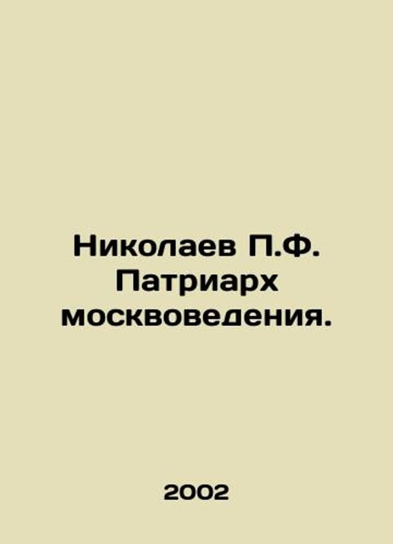 Nikolaev P.F. Patriarch of Muscovite Studies. In Russian /Nikolaev P.F. Patriarkh moskvovedeniya. P.V.Sytin M. Exlibris-press 2002. 388 p. We have thousands of titles and often several copies of each title may be available. Please feel free to contact us for a detailed description of the copies available. SKUalb357f16d6c67ec7de.
