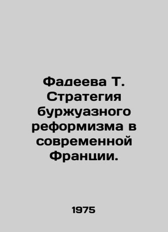 Fadeeva T. The Strategy of Bourgeois Reformism in Modern France. In Russian /Fadeeva T. Strategiya burzhuaznogo reformizma v sovremennoy Frantsii. M Thought 1975. We have thousands of titles and often several copies of each title may be available. Please feel free to contact us for a detailed description of the copies available. SKUalb358baf41e66ca7ed.