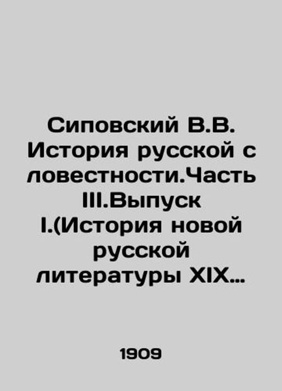 Sipovsky V.V. History of Russian Language. Part III.Issue I. (History of New Russian Literature in the 19th Century). (Pushkin, Gogol, Belinsky). In Russian /Sipovskiy V.V. Istoriya russkoy slovestnosti.Chast III.Vypusk I.(Istoriya novoy russkoy literatury XIX stoletiya).(Pushkin, Gogol, Belinskiy). Second edition. St. Petersburg x. year 1909. We have thousands of titles and often several copies of each title may be available. Please feel free to contact us for a detailed description of the copies available. SKUalb35f22ddf56de98d9.