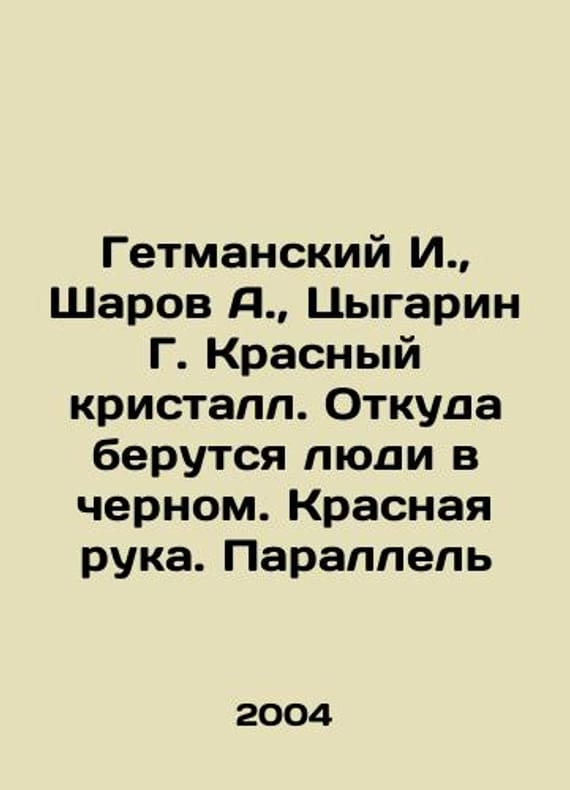 Hetmansky I., Sharov A., Tsygarin G. Red crystal. Where do people in black come from? Red hand. Parallel In Russian /Getmanskiy I., Sharov A., Tsygarin G. Krasnyy kristall. Otkuda berutsya lyudi v chernom. Krasnaya ruka. Parallel M Ltd. The Seekers Books 2004.We have thousands of titles and often several copies of each title may be available. Please feel free to contact us for a detailed description of the copies available. SKUalb364e0d00c84f04ea.