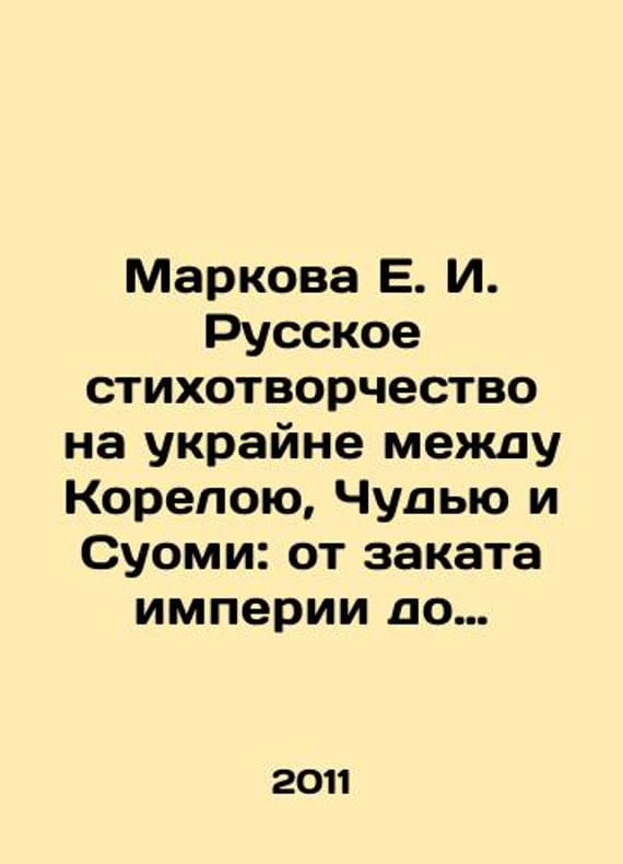 Markova E.I. Russian Poems on the Ukrainian River Between Korea, Chudi, and Suomi: From the Decline of the Empire to the Post-War Victory Days. In Russian /Markova E. I. Russkoe stikhotvorchestvo na ukrayne mezhdu Koreloyu, Chudyu i Suomi: ot zakata imperii do poslevoennykh pobednykh dney. Petrozavodsk Karelian Scientific Center of the Russian Academy of Sciences 2011, 140 p. We have thousands of titles and often several copies of each title may be available. Please feel free to contact us for a detailed description of the copies available. SKUalb3690ff4c46e7166a.