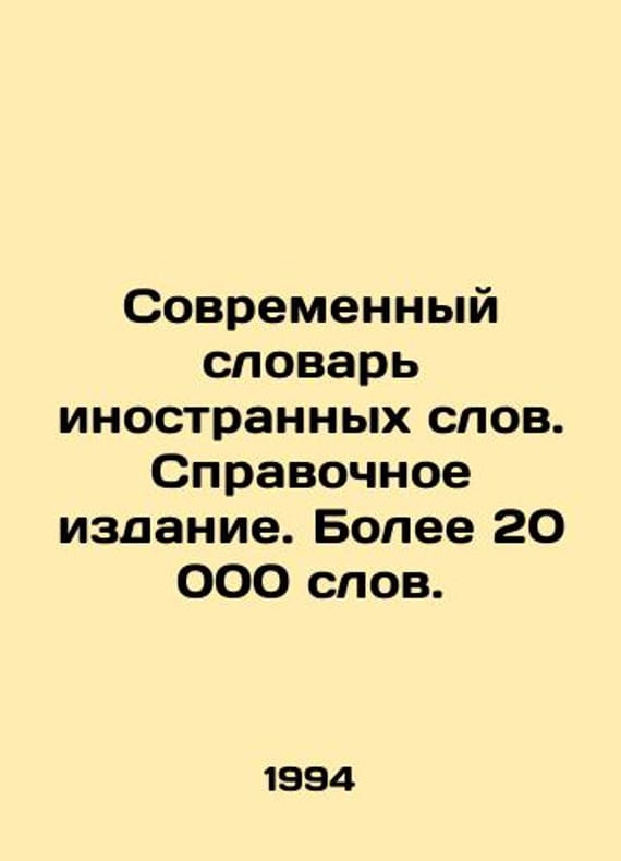 Modern Dictionary of Foreign Words. Reference Edition. More than 20,000 words. In Russian /Sovremennyy slovar inostrannykh slov. Spravochnoe izdanie. Bolee 20 000 slov. Editorial Board of Philological Dictionaries of the Russian Language. Head of Editorial Board of Grishin E.A. S.-P. Duet. 1994. 752s. We have thousands of titles and often several copies of each title may be available. Please feel free to contact us for a detailed description of the copies available. SKUalb36a4e1b47ab3b183.