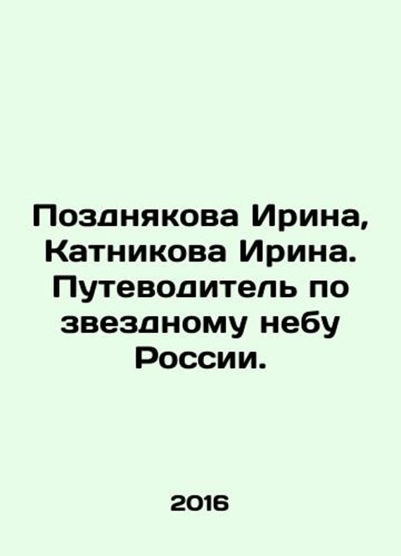 Pozdnyakova Irina, Katnikova Irina. A guide to the starry sky of Russia. In Russian /Pozdnyakova Irina, Katnikova Irina. Putevoditel po zvezdnomu nebu Rossii. Series: Gift Editions. Mission Cosmos. M. Exmo 2016. We have thousands of titles and often several copies of each title may be available. Please feel free to contact us for a detailed description of the copies available. SKUalb37abda1e49c36db1.