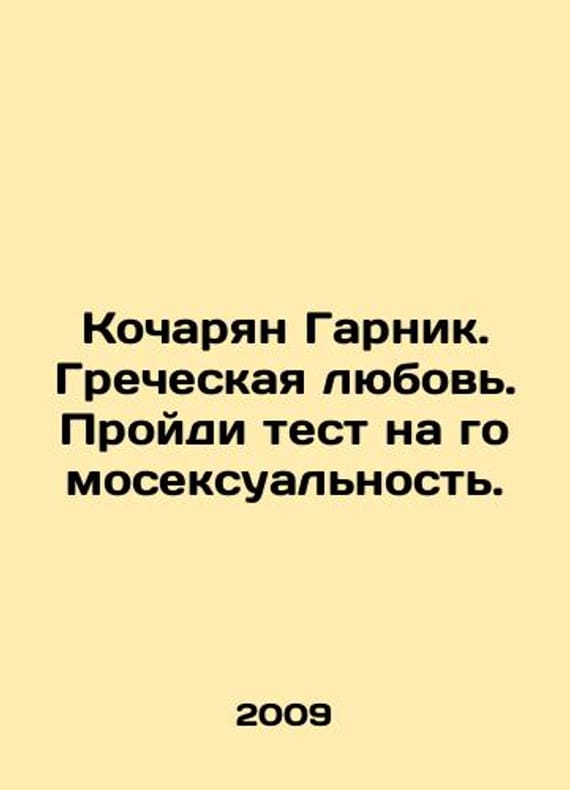 Kocharian Garnik. Greek love. Take the homosexuality test. In Russian /Kocharyan Garnik. Grecheskaya lyubov. Proydi test na gomoseksualnost. Series: Medical Practice. M. Eksmo. 2009. 288 p. We have thousands of titles and often several copies of each title may be available. Please feel free to contact us for a detailed description of the copies available. SKUalb37b142d403a4be15.