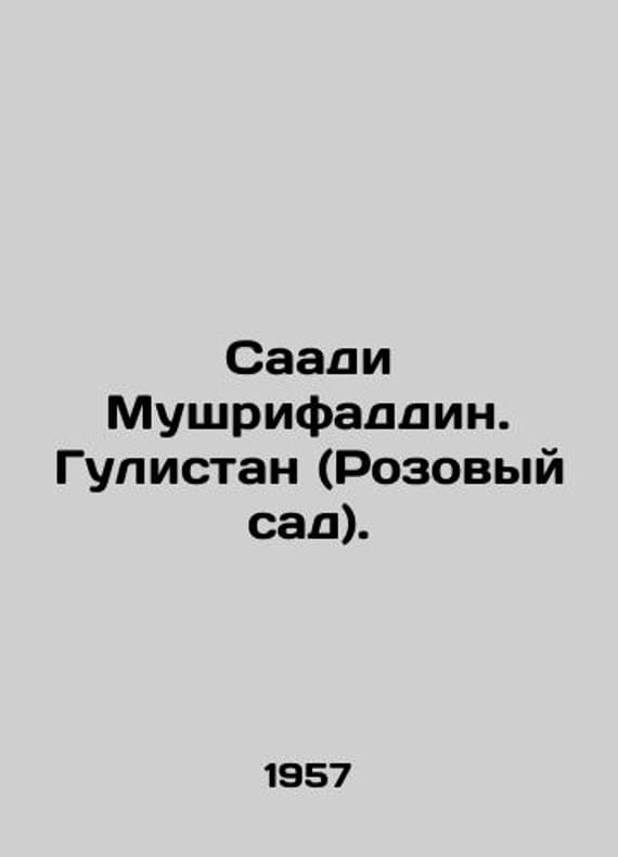 Saadi Mushrifaddin. Gulistan (Rose Garden). In Russian /Saadi Mushrifaddin. Gulistan (Rozovyy sad). Translation from Persian, text preparation, introductory article and R. Aliyevs note. Translation of A. Starostins poems. M. Goslitizdat, 1957. 324 p. We have thousands of titles and often several copies of each title may be available. Please feel free to contact us for a detailed description of the copies available. SKUalb37b63ec54e619a51.