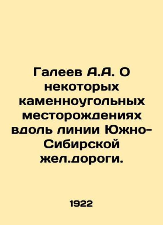 Galeev A.A. About some coal deposits along the South Siberian Yellow Road line. In Russian /Galeev A.A. O nekotorykh kamennougolnykh mestorozhdeniyakh vdol linii Yuzhno-Sibirskoy zhel.dorogi. Geological committee. Materials on general and applied geology. Issue 58. St. Petersburg: 1922. We have thousands of titles and often several copies of each title may be available. Please feel free to contact us for a detailed description of the copies available. SKUalb37c9c48219defc4f.