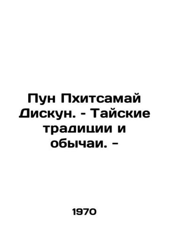 Pun Phitsamai Diskun. Thai traditions and customs. - In Russian /Pun Pkhitsamay Diskun. Tayskie traditsii i obychai. - In Thai and English with Russian handwritten translation in PDF.-Bangkok: WFB Book Series, 1970. We have thousands of titles and often several copies of each title may be available. Please feel free to contact us for a detailed description of the copies available. SKUalb37f493b24a55c8cc.