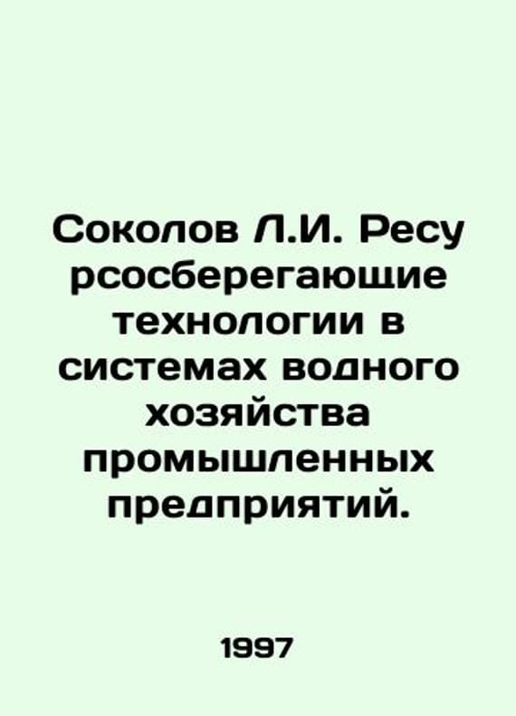 Sokolov L.I. Resource-saving technologies in water management systems of industrial enterprises. In Russian /Sokolov L.I. Resursosberegayushchie tekhnologii v sistemakh vodnogo khozyaystva promyshlennykh predpriyatiy. M. Publishing House of the Association of Building Universities. 1997. We have thousands of titles and often several copies of each title may be available. Please feel free to contact us for a detailed description of the copies available. SKUalb386cbe21ea7074e9.