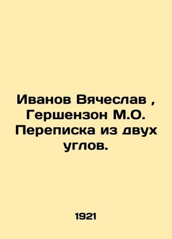 Ivanov Vyacheslav Gershenzon M. O. Correspondence from two corners. In Russian (ask us if in doubt)/Ivanov Vyacheslav Gershenzon M. O. Perepiska iz dvukh uglov.St. Petersburg. ALKONOST. 1921. 62 2 p. SKUalbff0f505f687f860a.