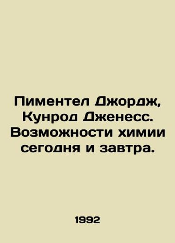 Pimentel George, Kunrod Geness. The possibilities of chemistry today and tomorrow. In Russian /Pimentel Dzhordzh, Kunrod Dzheness. Vozmozhnosti khimii segodnya i zavtra. Translation from English of V. A. Sipachevai, Candidate of Chemical Sciences, Doctor of Chemical Sciences, Professor Yu. A. Ustyniuk, edited by Academician Yu. D. Tretyakov. Artist Yu. S. Urmanchiev. Moscow. World. 1992. 288 p. We have thousands of titles and often several copies of each title may be available. Please feel free to contact us for a detailed description of the copies available. SKUalb391f677264651d97.
