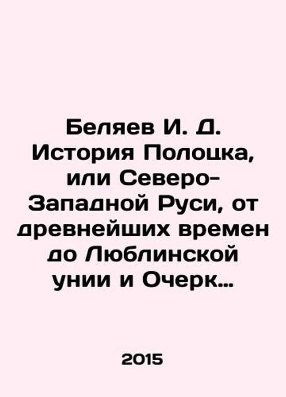 I. D. Belyaev History of Polotsk, or Northwestern Rus, from ancient times to the Union of Lublin and an Essay on the History of the Northwestern Krai of Russia. In Russian /Belyaev I. D. Istoriya Polotska, ili Severo-Zapadnoy Rusi, ot drevneyshikh vremen do Lyublinskoy unii i Ocherk istorii Severo-Zapadnogo kraya Rossii. 5 copy Moscow Publishing House, V. Sekachev, 2015 584s. We have thousands of titles and often several copies of each title may be available. Please feel free to contact us for a detailed description of the copies available. SKUalb396bf197d750c71f.