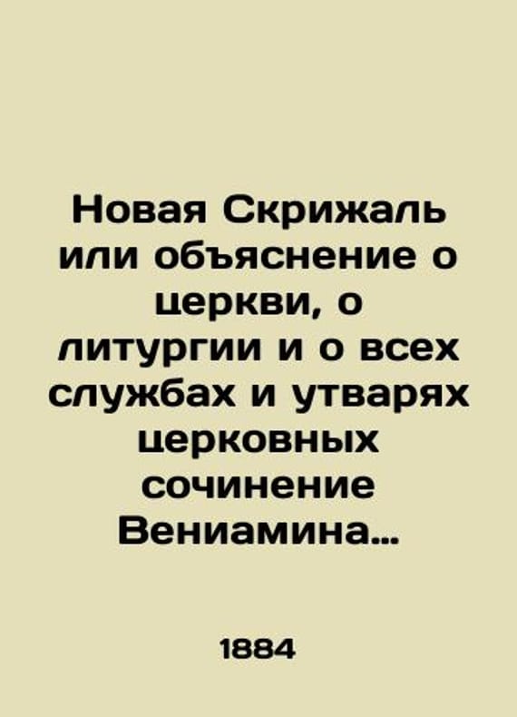 """A new Tablet or Explanation about the Church the Liturgy and all services and utensils written by Benjamin the Archbishop of Nizhny Novgorod and Arzamas in four parts In Russian (ask us if in doubt)/Novaya Skrizhal' ili obyasnenie o tserkvi o liturgii i o vsekh sluzhbakh i utvaryakh tserkovnykh sochinenie Veniamina Arkhiepiskopa Nizhegorodskogo i Arzamasskogo v chetyrekh chastyakh Short description: In Russian (ask us if in doubt).Before 1917 the New Tablet was published 17 times. Archbishop Benjamin in the first part of his book talks about the temple the liturgical utensils and so forth; in the second about church services and posts; in the third about ordination and ordination the consecration of the temple and the Antimines; and in the fourth about the Trinity. We have thousands of titles and often several copies of each title may be available. Please feel free to contact us for a detailed description of the copies available. SKUalb39c6a7f7b6df8351"""