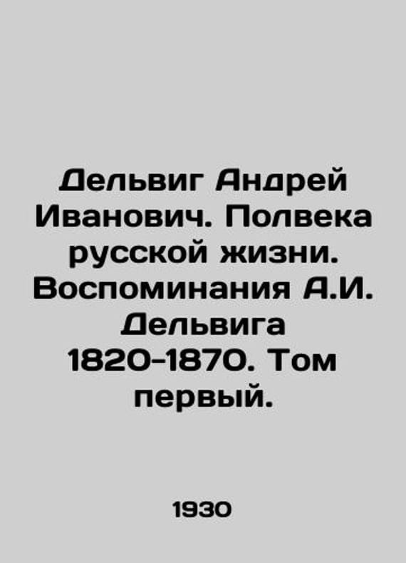 Andrey Ivanovich Delvig. Half a Century of Russian Life. Memories of A.I. Delvig 1820-1870. Volume One. In Russian /Delvig Andrey Ivanovich. Polveka russkoy zhizni. Vospominaniya A.I. Delviga 1820-1870. Tom pervyy. M.-L. Academia. 1930. We have thousands of titles and often several copies of each title may be available. Please feel free to contact us for a detailed description of the copies available. SKUalb39efa044cd831936.