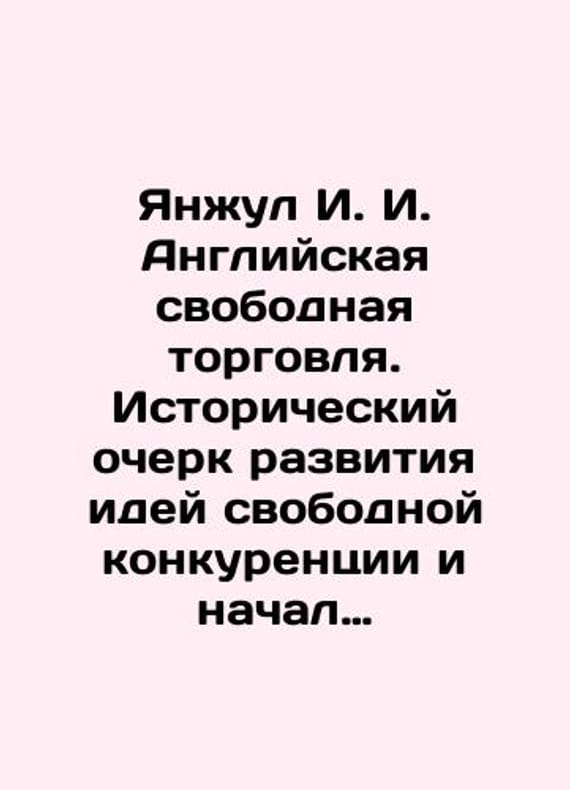 Yanjul I. I. English Free Trade. Historical sketch of the development of ideas of free competition and the beginning of state intervention. Issue one. Mercantile period. Issue two. Period of free trade. In Russian (ask us if in doubt)/Yanzhul I. I. AYanjul I. I. English Free Trade. Historical sketch of the development of ideas of free competition and the beginning of state intervention. Issue one. Mercantile period. Issue two. Period of free trade. In Russian (ask us if in doubt)/Yanzhul I. I. Angliyskaya svobodnaya torgovlya. Istoricheskiy ocherk razvitiya idey svobodnoy konkurentsii i nachal gosudarstvennogo vmeshatelstva. Vypusk pervyy. Period merkantilnyy. Vypusk vtoroy. Period svobodnoy torgovli.Moscow Typography by A.I. Mamontov and former F.B. Miller printing house 1876 and 1882 228 p. We have thousands of titles and often several copies of each title may be available. Please feel free to contact us for a detailed description of the copies available. SKUalb3a08ca9ddf75c479