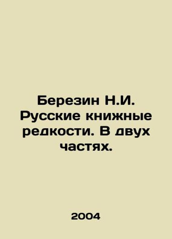 Berezin N.I. Russian book rarities. In two parts. In Russian /Berezin N.I. Russkie knizhnye redkosti. V dvukh chastyakh. Artist Ozerov I.A. Experience of bibliographic description of rare books with indication of their value. M. Centropolygraph 2004. 281 p. We have thousands of titles and often several copies of each title may be available. Please feel free to contact us for a detailed description of the copies available. SKUalb3a0a8940f9decee1.