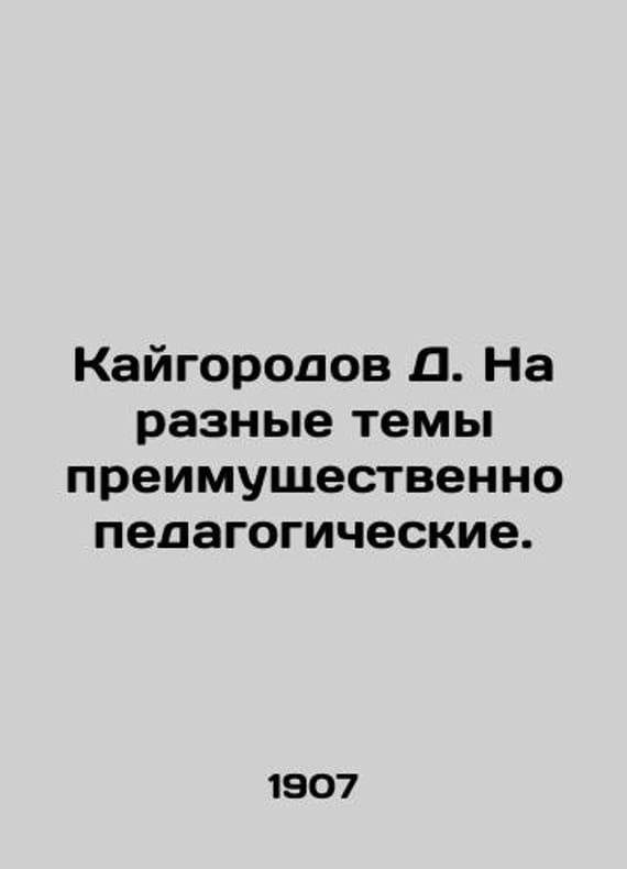 Kaigorod D. On different topics, mainly pedagogical. In Russian /Kaygorodov D. Na raznye temy preimushchestvenno pedagogicheskie. Edition 2, amended and supplemented with notes and programs on natural science, for all grades of the 7th grade secondary school. St. Petersburg. Suvorin Edition A.S. 1907. 150 c. We have thousands of titles and often several copies of each title may be available. Please feel free to contact us for a detailed description of the copies available. SKUalb3a1a31dd83f542fd.