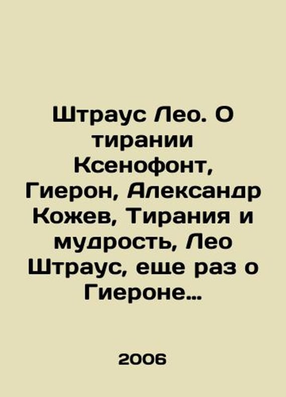 Strauss Leo. On the tyranny of Xenophon, Gieron, Alexander Kozhev, Tyranny and Wisdom, Leo Strauss, once again on Gieron Xenophon In Russian /Shtraus Leo. O tiranii Ksenofont, Gieron, Aleksandr Kozhev, Tiraniya i mudrost, Leo Shtraus, eshche raz o Gierone Ksenofonta St. Petersburg University Publishing House 2006. 327s. We have thousands of titles and often several copies of each title may be available. Please feel free to contact us for a detailed description of the copies available. SKUalb3a7889ada9e26a4f.