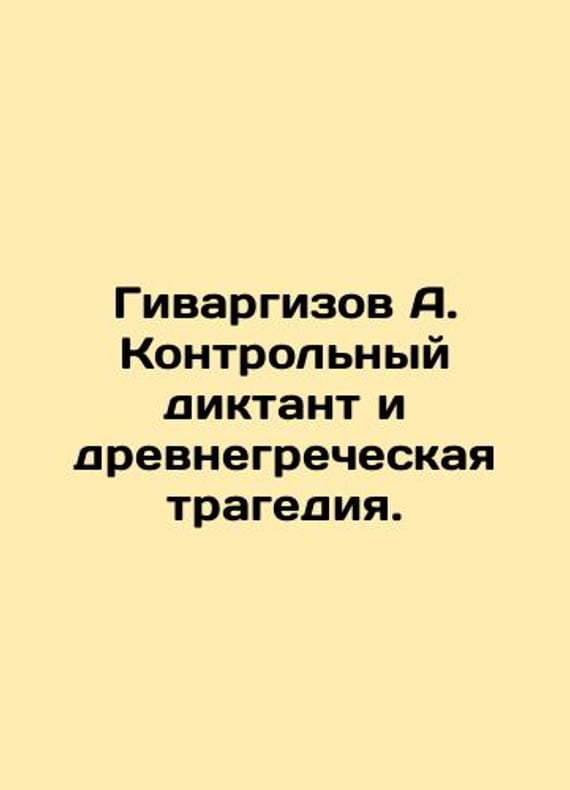 Givargizov A. The Control Dictator and Ancient Greek Tragedy. In Russian /Givargizov A. Kontrolnyy diktant i drevnegrecheskaya tragediya. 2009 We have thousands of titles and often several copies of each title may be available. Please feel free to contact us for a detailed description of the copies available. SKUalb3a911651e5fd1f9f.