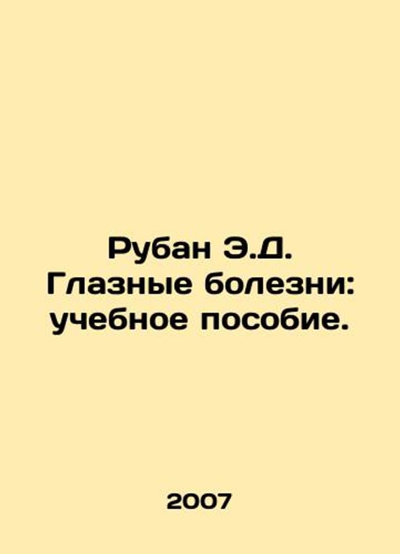 Ruban E.D. Eye diseases: a textbook. In Russian /Ruban E.D. Glaznye bolezni: uchebnoe posobie. SPOT series. Rostov-on-Don. Phoenix. 2007. We have thousands of titles and often several copies of each title may be available. Please feel free to contact us for a detailed description of the copies available. SKUalb3a958b5d9efe89dc.
