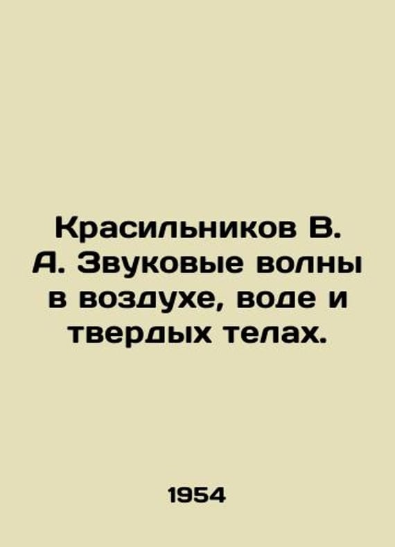Krasilnikov V. A. Sound waves in air, water and solid bodies. In Russian /Krasilnikov V. A. Zvukovye volny v vozdukhe, vode i tverdykh telakh. M. State Publishing House of Techno-Theoretical Literature. 1954. 439 p. We have thousands of titles and often several copies of each title may be available. Please feel free to contact us for a detailed description of the copies available. SKUalb3ad070158df2ebff.