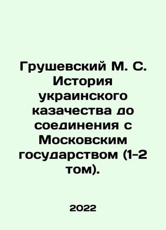 Hrushevsky M. S. History of the Ukrainian Cossacks before joining the Moscow State (Volume 1-2). In Russian /Grushevskiy M. S. Istoriya ukrainskogo kazachestva do soedineniya s Moskovskim gosudarstvom (1-2 tom). Model 30, Moscow Publishing House, V. Sekachev 2022, 878s. We have thousands of titles and often several copies of each title may be available. Please feel free to contact us for a detailed description of the copies available. SKUalb3b4fec55cc825436.