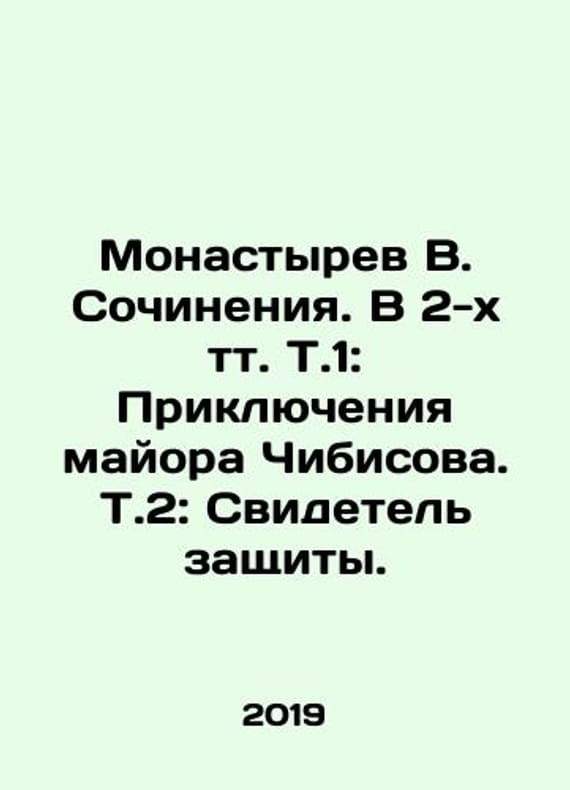 Monastyrev V. Works. In 2 vol. Vol. 1: The Adventures of Major Chibisov. Vol. 2: Witness for the Defence. In Russian /Monastyrev V. Sochineniya. V 2-kh tt. T.1: Priklyucheniya mayora Chibisova. T.2: Svidetel zashchity. Library of Adventure and Science Fiction. Moscow Alatyr, 2009. 416 p. We have thousands of titles and often several copies of each title may be available. Please feel free to contact us for a detailed description of the copies available. SKUalb3b7abdf13e8ac5b0.