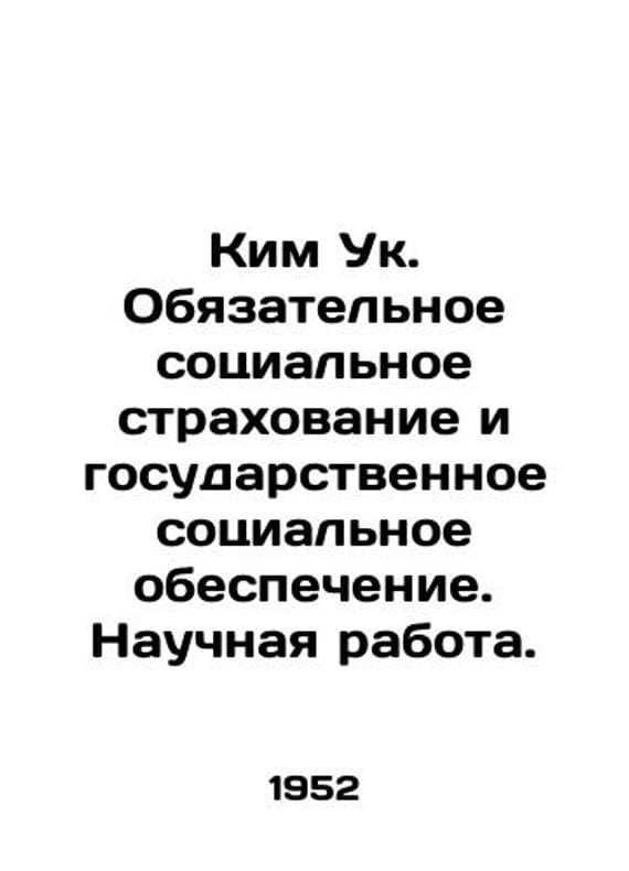 Kim Uk. Compulsory social insurance and state social security. Scientific work. In Russian /Kim Uk. Obyazatelnoe sotsialnoe strakhovanie i gosudarstvennoe sotsialnoe obespechenie. Nauchnaya rabota. In Korean. In two volumes. Korea. 1952. 290 and 303 p. We have thousands of titles and often several copies of each title may be available. Please feel free to contact us for a detailed description of the copies available. SKUalb3bda4de10a0425cf.