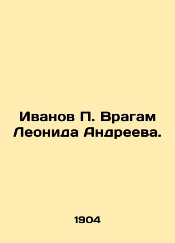 Ivanov P. to Leonid Andreevs Enemies. In Russian /Ivanov P. Vragam Leonida Andreeva. Psychological Study. M. Editions by V. N. Egorov. 1904. 48 p. We have thousands of titles and often several copies of each title may be available. Please feel free to contact us for a detailed description of the copies available. SKUalb3c42c158e3193260.