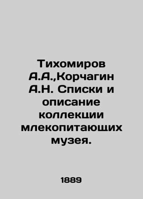 Tikhomirov A.A., Korchagin A.N. Lists and description of the museums mammal collection. In Russian /Tikhomirov A.A., Korchagin A.N. Spiski i opisanie kollektsii mlekopitayushchikh muzeya. Lists and descriptions of objects in the Zoological Museum of Imperial Moscow University. Department 4, Issue 1. Moscow: 1889. We have thousands of titles and often several copies of each title may be available. Please feel free to contact us for a detailed description of the copies available. SKUalb3c44e4a3118b634c.