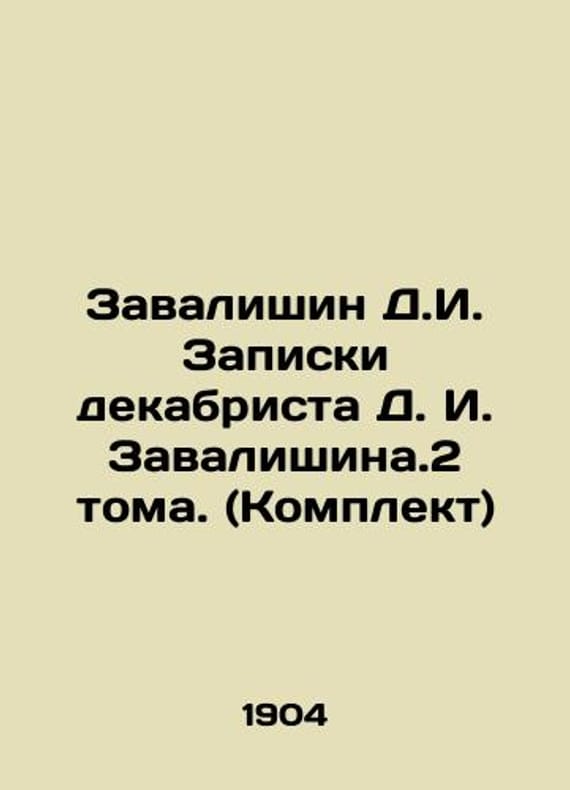 Zavalishin D.I. Notes by Decembrist D.I. Zavalishin Volume 2 (Set) In Russian (ask us if in doubt)/Zavalishin D.I. Zapiski dekabrista D. I. Zavalishina.2 toma. (Komplekt) Short description: In Russian (ask us if in doubt).Verlag Dr. Marchlewski 1904 Munich First Edition 380 + 2 pp. + 2 l. We have thousands of titles and often several copies of each title may be available. Please feel free to contact us for a detailed description of the copies available. SKUalb3c5df128a95910e9