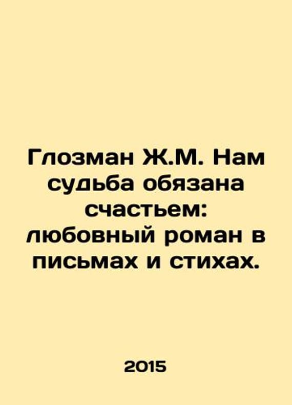 Glozman J.M. We owe fate to happiness: a love affair in letters and poems. In Russian /Glozman Zh.M. Nam sudba obyazana schastem: lyubovnyy roman v pismakh i stikhakh.Glozman J.M. We owe fate to happiness: a love affair in letters and poems. 2015.We have thousands of titles and often several copies of each title may be available. Please feel free to contact us for a detailed description of the copies available. SKUalb7f1ebafa03dbe255.
