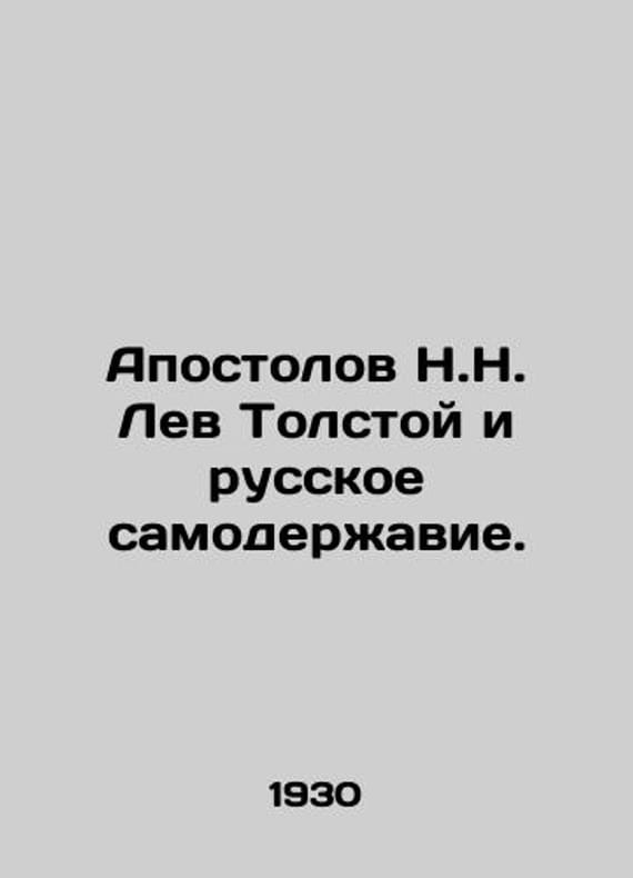 The Apostles of N.N. Leo Tolstoy and the Russian Autocracy. In Russian /Apostolov N.N. Lev Tolstoy i russkoe samoderzhavie. Moscow-Leningrad. Gosizdat. 1930. We have thousands of titles and often several copies of each title may be available. Please feel free to contact us for a detailed description of the copies available. SKUalb3ccd3c4aed2a79a0.