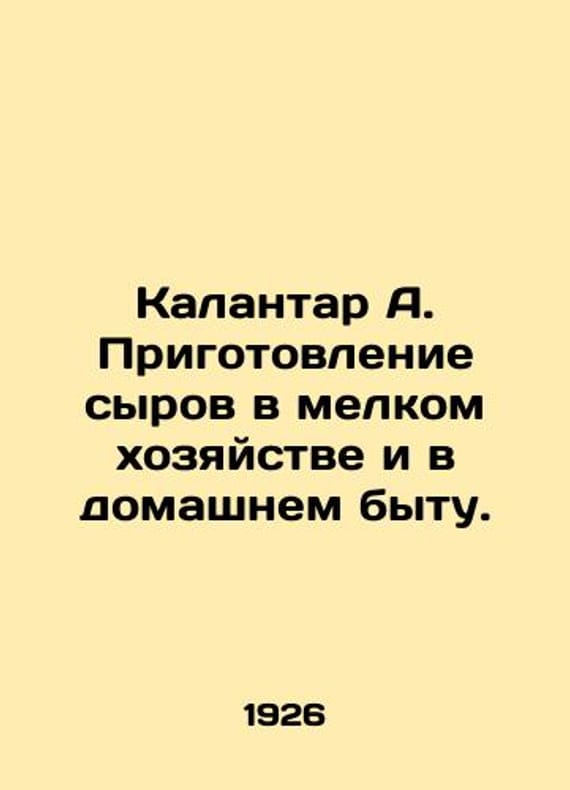 Kalantar A. Cooking cheeses in small households and households. In Russian (ask us if in doubt)/Kalantar A. Prigotovlenie syrov v melkom khozyaystve i v domashnem bytu.New Village 1926. 72 p. We have thousands of titles and often several copies of each title may be available. Please feel free to contact us for a detailed description of the copies available. SKUalb3d08c5e9e240897e