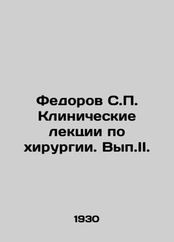 Fedorov S. Clinical Lectures on Surgery. Vol.II. In Russian /Fedorov S. Klinicheskie lektsii po khirurgii. Vyp.II. Under the editorial assistant of the hospital surgeon at the clinic of the Military Medical Academy, private associate professor A.S.Maksimovicha. M.-L.: Military Medical Academy-GIZ, 1930. We have thousands of titles and often several copies of each title may be available. Please feel free to contact us for a detailed description of the copies available. SKUalb3d16098e50859aa4.