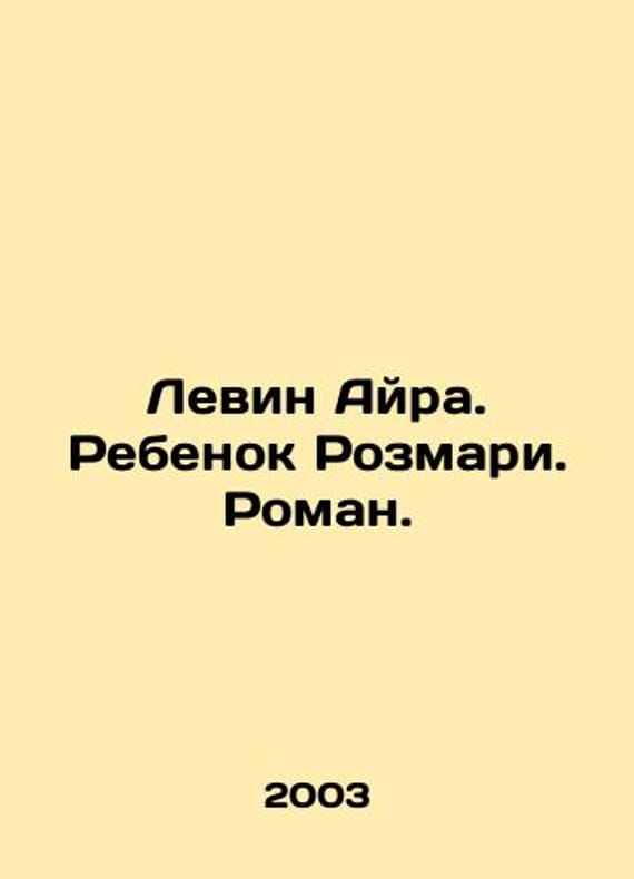 Levin Ayra. Rosemarys Child. Roman. In Russian /Levin Ayra. Rebenok Rozmari. Roman. Blockbuster. Screened novel. Development of serial design by artist I. A. Ozerov. Moscow. Centrpolygraph. 2003. 253 p. We have thousands of titles and often several copies of each title may be available. Please feel free to contact us for a detailed description of the copies available. SKUalb3d32a4a55f78e695.