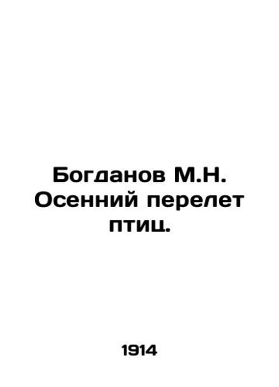 Bogdanov M.N. Fall bird flight. In Russian /Bogdanov M.N. Osenniy perelet ptits. Essay by a professor of zoology. With drawings. Series From Russian Nature. Moscow Publishing House I.D.Sytin 1914. 24 pp.We have thousands of titles and often several copies of each title may be available. Please feel free to contact us for a detailed description of the copies available.SKUalb22908bab7ab40647.