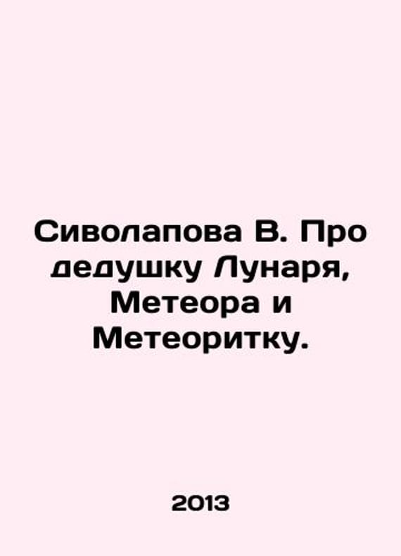 Sivolapova V. About Lunars grandfather, Meteor, and Meteor. In Russian /Sivolapova V. Pro dedushku Lunarya, Meteora i Meteoritku. Illya Vorobyov O. Chelyabinsk 2013. We have thousands of titles and often several copies of each title may be available. Please feel free to contact us for a detailed description of the copies available. SKUalb3e212d016afbb451.
