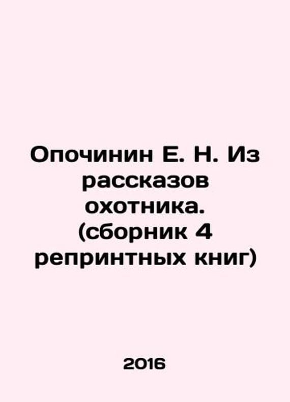 E. N. Opochinin From the stories of the hunter. (collection of 4 reprinted books) In Russian /Opochinin E. N. Iz rasskazov okhotnika. (sbornik 4 reprintnykh knig) Model 30 Moscow Publishing House, V. Sekachev, 2016, 520s. We have thousands of titles and often several copies of each title may be available. Please feel free to contact us for a detailed description of the copies available. SKUalb3e3179ea943dca43.