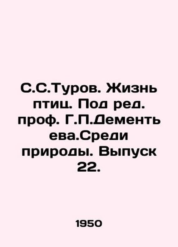 S.S.Turov: The Life of Birds. Edited by Prof. G. Dementiev. Among Nature. Issue 22. In Russian /S.S.Turov. Zhizn ptits. Pod red. prof. G.Dementeva.Sredi prirody. Vypusk 22.Second Edition, revised and supplemented. Moscow Publishing House of the Moscow Society of Nature Testers, 1950.We have thousands of titles and often several copies of each title may be available. Please feel free to contact us for a detailed description of the copies available. SKUalb3e49cdebd213bdfa.