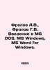 Frolov A.V., Frolov G.V. Introduction to MS DOS, MS Windows, MS Word for Windows. In Russian /Frolov A.V., Frolov G.V. Vvedenie v MS DOS, MS Windows, MS Word for Windows. The Personal Computer Step-by-Step Series. Volume 1 Moscow Dialogue-Mifi 1994. 264s. We have thousands of titles and often several copies of each title may be available. Please feel free to contact us for a detailed description of the copies available. SKUalb3ed32c89a9151004.