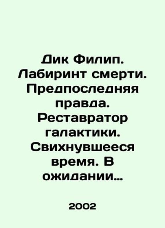 Dick Philip. The labyrinth of death. The penultimate truth. The restorer of the galaxy. Hanging time. Waiting for the past. In Russian /Dik Filip. Labirint smerti. Predposlednyaya pravda. Restavrator galaktiki. Svikhnuvsheesya vremya. V ozhidanii proshlogo. Set of 5 books. Series: Classics of World Fiction. Moscow, AST, Ermak, Lux. 2002-2005. 712 p. We have thousands of titles and often several copies of each title may be available. Please feel free to contact us for a detailed description of the copies available. SKUalb3ed6b12df63ed559.